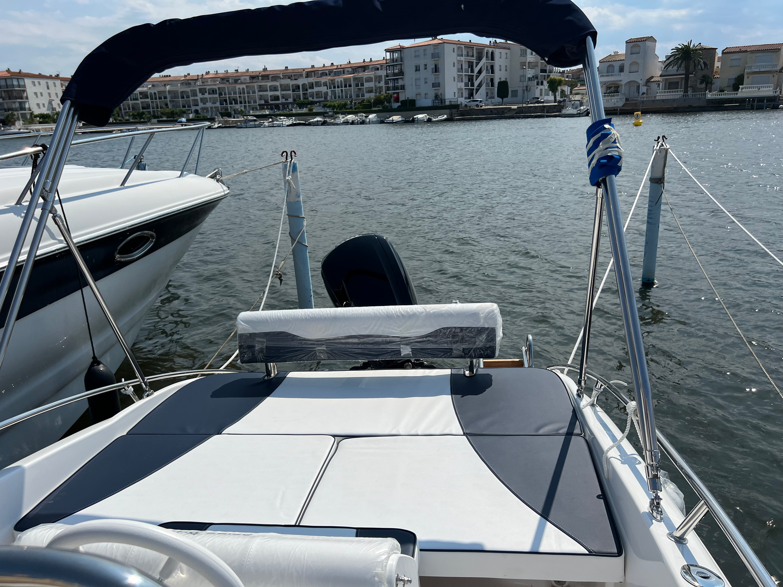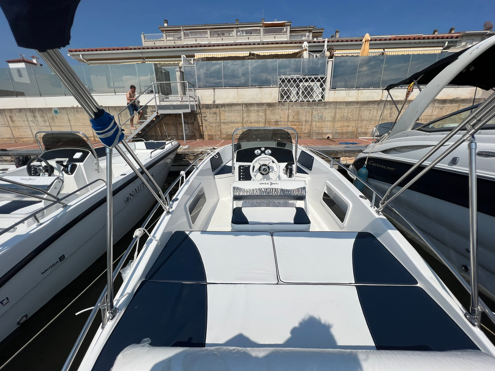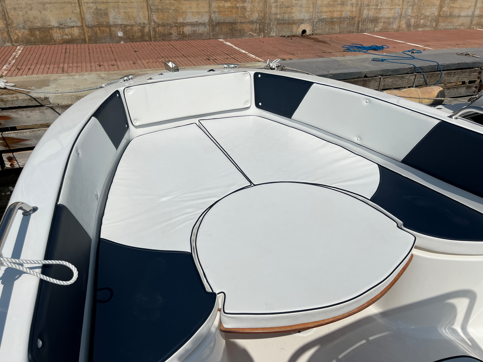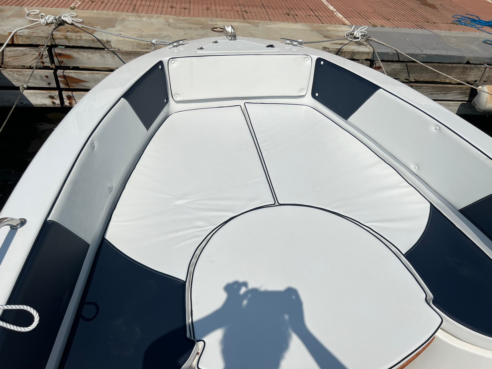 Barco ideal para días con la família o amigos. Con eslora total de 6,2 metros, está aprovechado el máximo para tener dos enormes solariums, y comodidad hasta 8 personas. Motor mercury nuevo de 100 cv, permite hacer navegaciones suaves, fiables y agradables, y con consumo muy reducido. Ven a probar ahora mismo esta magnífica embarcación!